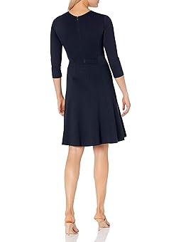 - 3/4 Sleeve Scoop Neck Fit and Flare Dress